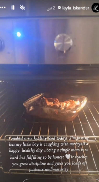 وشاركت ليلى إسكندر متابعيها عبر حسابها الرسمي على إنستجرام مقطع فيديو من داخل المطبخ وهي تُحضّر وجبة صحية، وعلّقت قائلة: “حضّرت أكل صحي اليوم. أنا صايمة، بس الصغير عندي عم يسعل. أتمنى لي ولكم يوماً سعيداً وصحياً.”