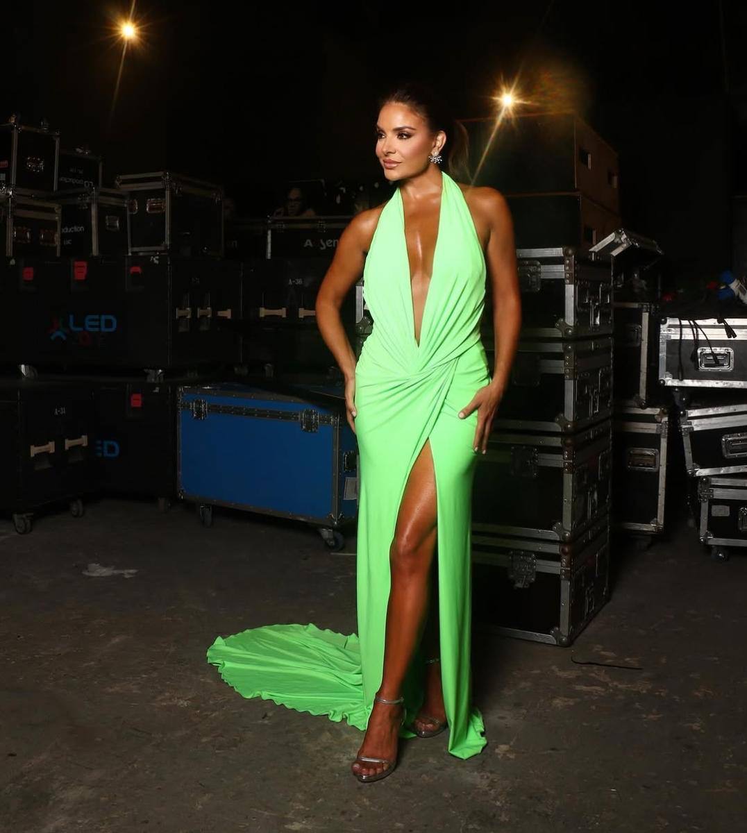 • لفتت هيلدا خليفة الأنظار بجرأة فستانها النيون الأخضر من نيكولا جبران، الذي جاء بياقة بارزة وذيل طويل، واختارته مع مجوهرات من Flemish by Tarfa Itani.