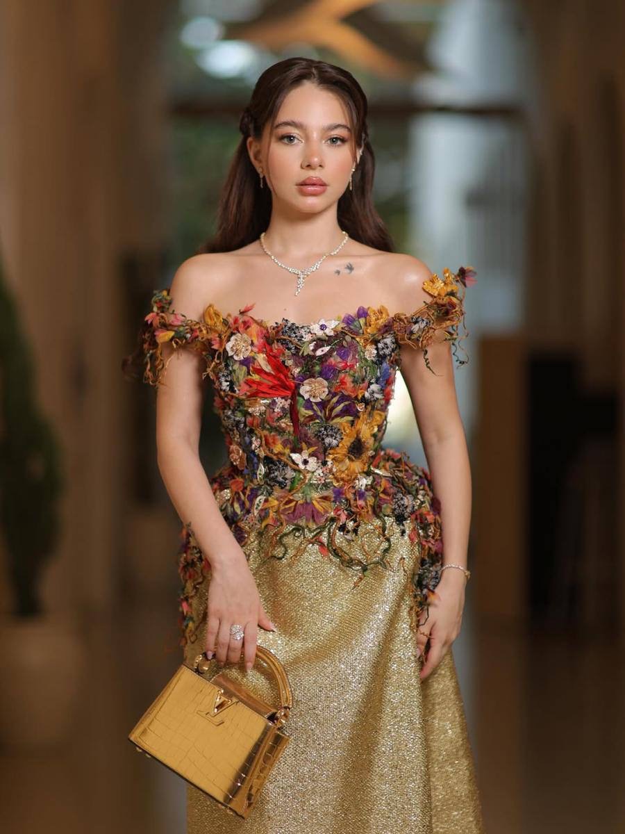 • فيما اختارت بيسان إسماعيل فستاناً ذهبياً لامعاً من هويدا بريدي، في حفل الموريكس دور، مرصعاً بزهور ملوّنة على الصدر، ونسقته مع حقيبة “لويس فويتون” ومجوهرات ذهبية وألماسية.