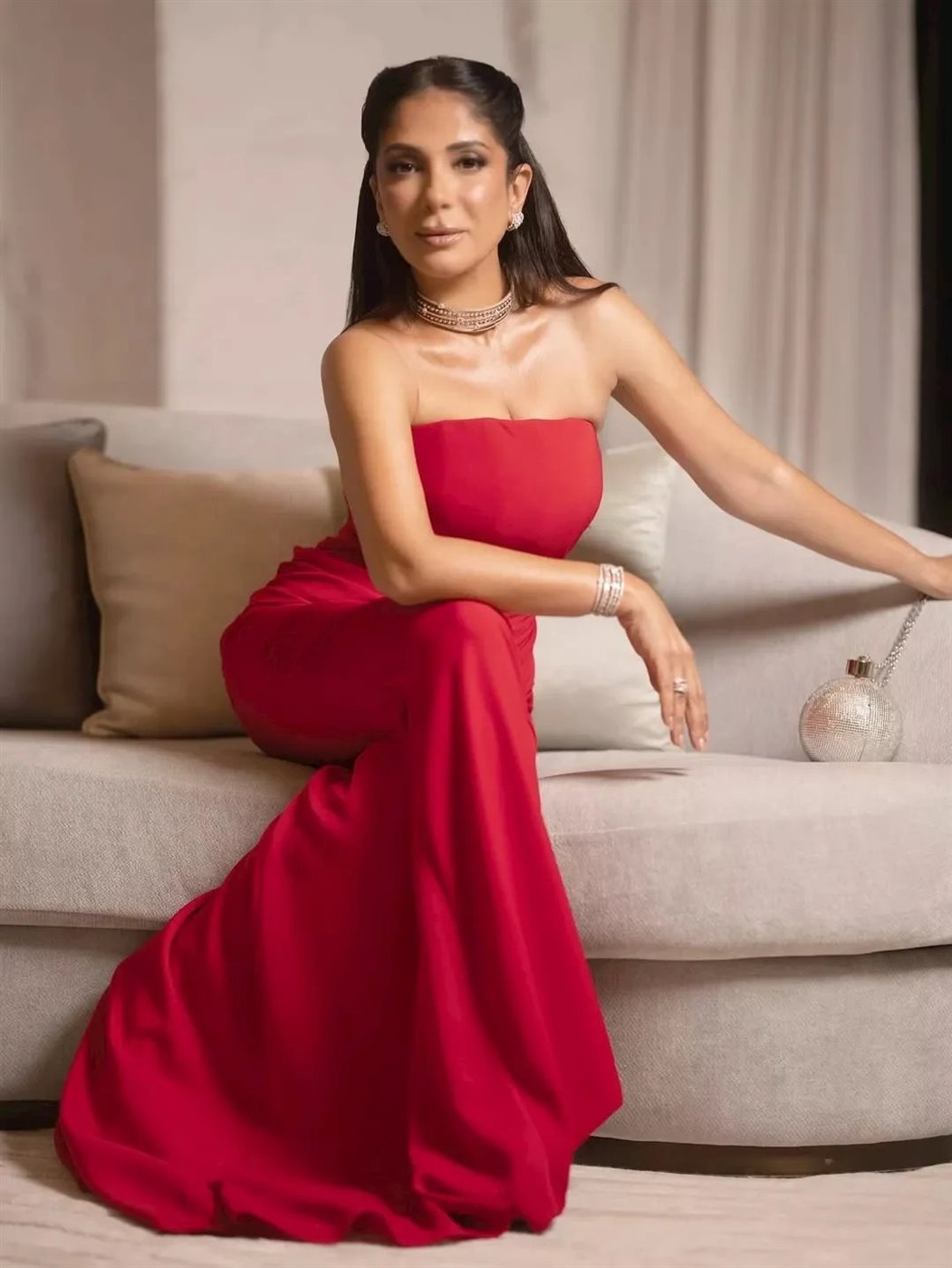 كما تألقت منى زكي بإطلالة أنثوية راقية بفستان أحمر كلاسيكي أبرز ملامحها الجذابة، فيما ظهر أحمد حلمي بإطلالة أنيقة جمع فيها بين البساطة والرقي، مرتديًا بدلة بنية مخططة مع قميص أبيض.