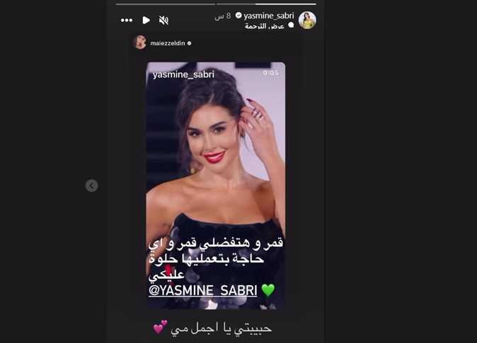 ونشرت مي عز الدين عبر خاصية القصص في حسابها على إنستجرام صورة للممثلة ياسمين صبري من العرض، وعلّقت عليها قائلة: “قمر.. وكل حاجة بتعمليها بتليق عليكِ.”
