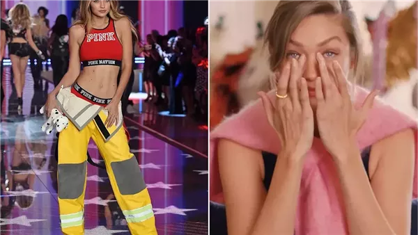 سر بكاء جيجي حديد على منصة “فيكتوريا سيكريت”