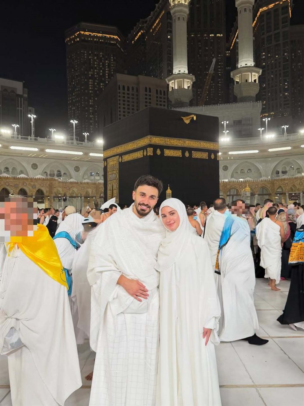 وظهرت شيرين بيوتي بإطلالة بسيطة وأنيقة، مرتدية عباءة بيضاء وحجابًا ناعمًا يعكسان روح الإيمان والخشوع، بينما بدا أسامة مرتديًا ملابس الإحرام في مشهد طغت عليه السكينة والروحانية قرب الكعبة المشرفة.
