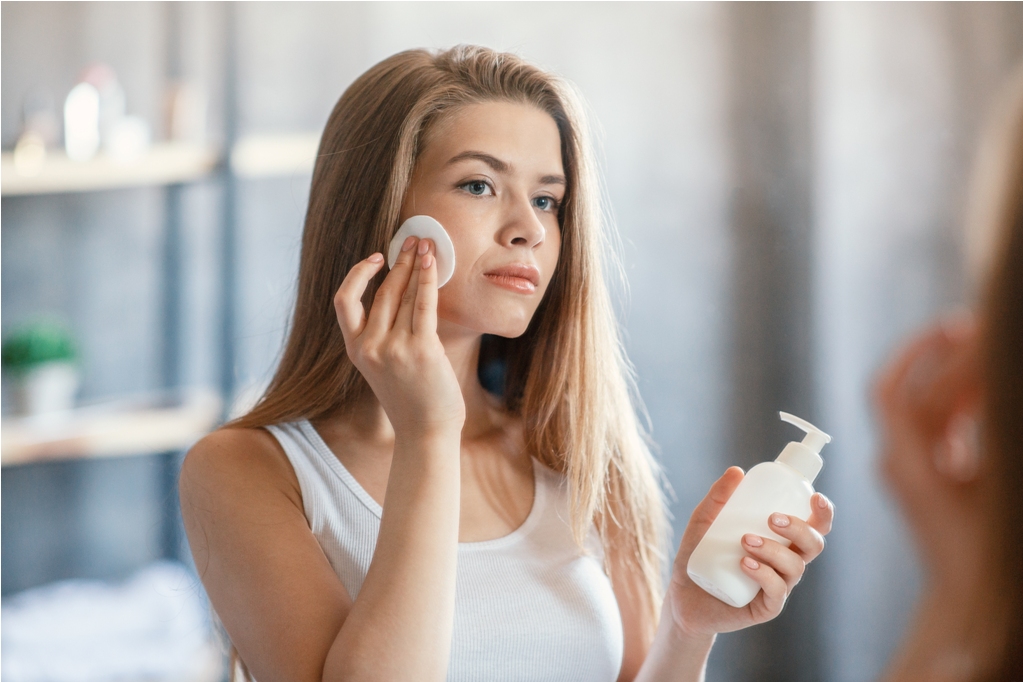 وبعد إزالة المكياج عليكي باستخدام غسول خالي من العطور للوجه وعند إزالته عليكي بالماء الفاتر، وتجنبي الماء الساخن لأنه قد يسبب جفاف البشرة وحساسيتها مع التجفيف برفق باستخدام فوطة ناعمة، وبعد ذلك عليكي مباشرة استخدام التونر لترطيب البشرة وإزالة أي شوائب متبقية وإعادة توازن البشرة.