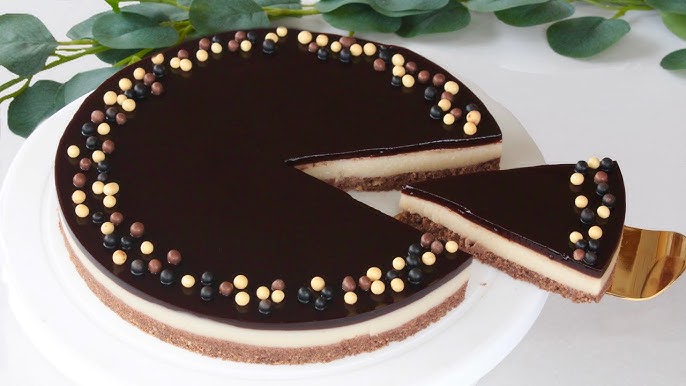 صبي على وجه الكيك تغليفة الكريمة والشوكولاتة وقطعيه وقدميه.