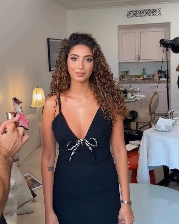 فيما تألقت الممثلة بفستان أسود قصير من تصميم زهير مراد، ومجوهرات فاخرة من كارتييه، في تنسيق أنيق أعدّه الستايلست سيدريك حداد.