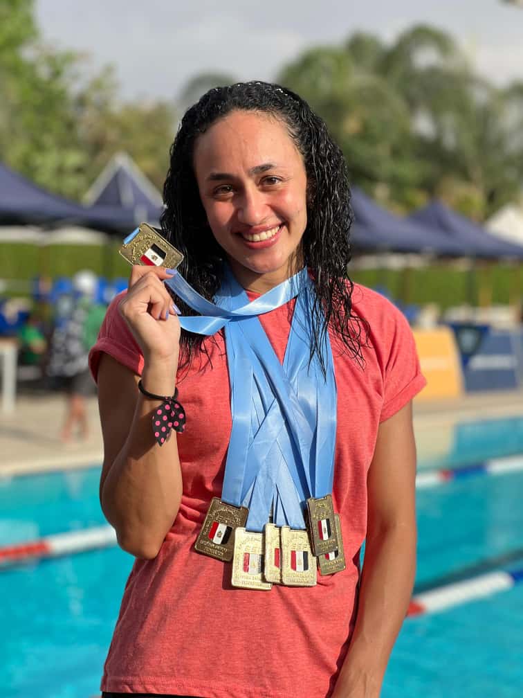 حاصلة على العديد من الميداليات والأرقام القياسية المصرية في الدورات والبطولات العربية والإفريقية.