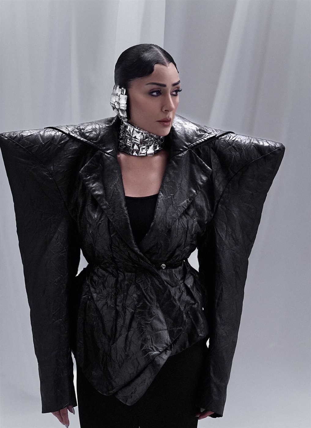 جاكيت جلدي بتصميم هندسي لافت من غادة عبد الرازق