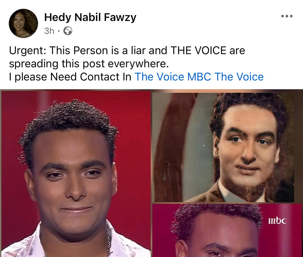 وكتبت هيدي في منشورها: “الراجل ده كذاب، المنشور ده منتشر في كل مكان، ومحتاجة أوصل لحد في MBC The Voice.”