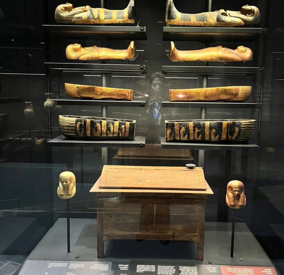 وفي سياق متصل، من بين مقتنيات الملك المعروضة في المتحف المصري الكبير يبرز صندل توت عنخ آمون الذهبي، المصنوع من الذهب والجلد المزخرف بعناية مذهلة، كان الصندل مصممًا لحماية قدم الملك من الإصابات، ما يعكس الدقة الفائقة والإبداع الذي ميّز الحرفيين المصريين القدماء.