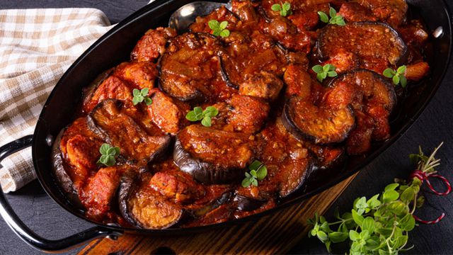 أدخلي صينية المسقعة إلى الفرن حتى تنضج تماماً، ثم قدميها ساخنة.