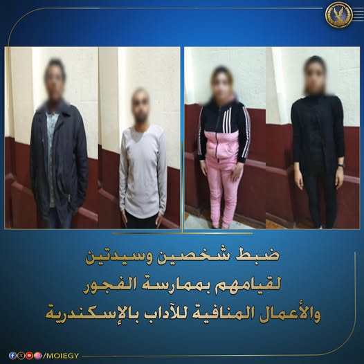فى إطار جهود وزارة الداخلية لمكافحة الجرائم المنافية للآداب العامة، تمكنت الإدارة العامة لحماية الآداب بقطاع الشرطة المتخصصة من ضبط شبكة تضم شخصين وسيدتين – لهما معلومات جنائية – استخدموا أحد تطبيقات الهواتف المحمولة في الإعلان عن ممارسة الفجور والأعمال المنافية للآداب لراغبي المتعة مقابل مبالغ مالية.