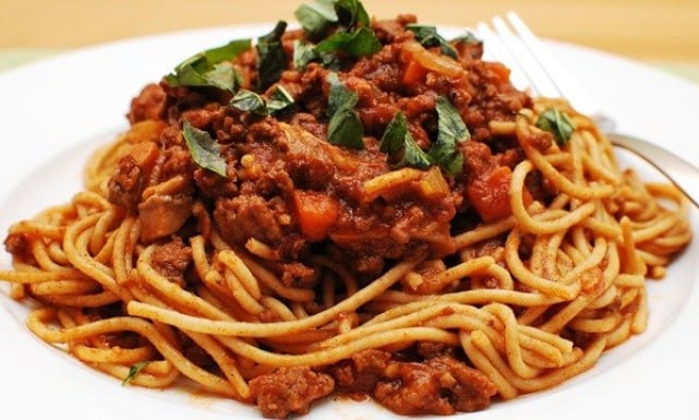 طريقة عمل المكرونة الإسباجيتي باللحم المفروم والبارميزان