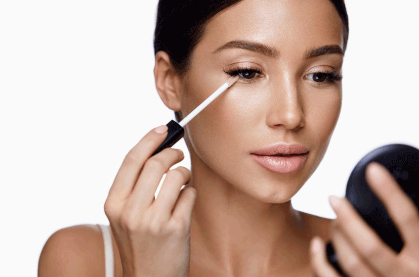 إذا كانت التغطية الإضافية ضرورية، استخدمي خافي العيوب (كونسيلر) فقط على المناطق التي تحتاجها، مثل تحت العينين أو البقع الداكنة، بدلاً من وضع كريم أساس كامل على الوجه.