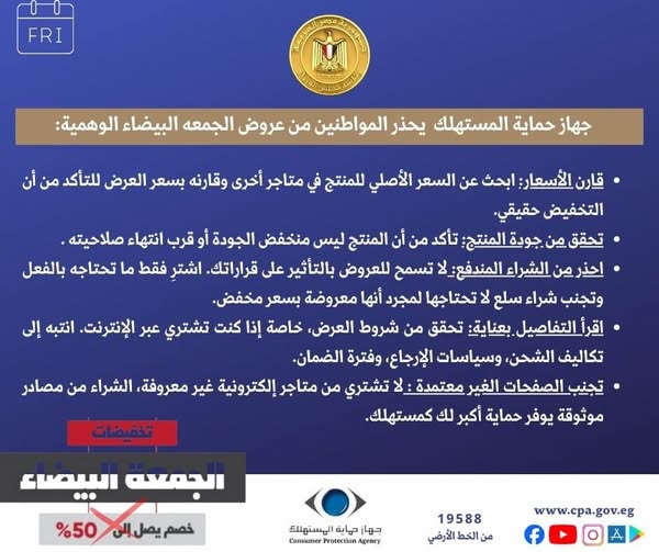 "حماية المستهلك" يحذر المواطنين من فخ "الجمعة البيضاء الوهمية" ويقدم 5 نصائح للشراء الآمن