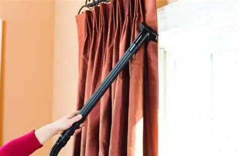 لذا عليكي باستخدام المكنسة الكهربائية مع ملحق الفرشاة الناعمة أو فوهة التنجيد، وابدأي التنظيف من أعلى الستارة إلى أسفلها لضمان إزالة الغبار بفعالية دون نشره في الهواء.