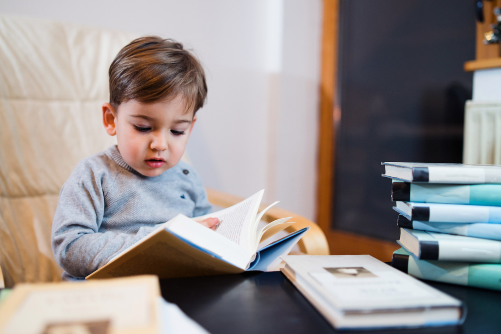 الاهتمام بالكتب والكلمات، حيث يظهر الفضول تجاه الكتب، ويقلب الصفحات، ويطرح أسئلة حول الكلمات أو العناوين.