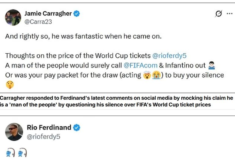 شهدت منصة "إكس" صراعاً بين جيمي كاراغر مدافع ليفربول السابق وريو فرديناند أسطورة مانشستر يونايتد.