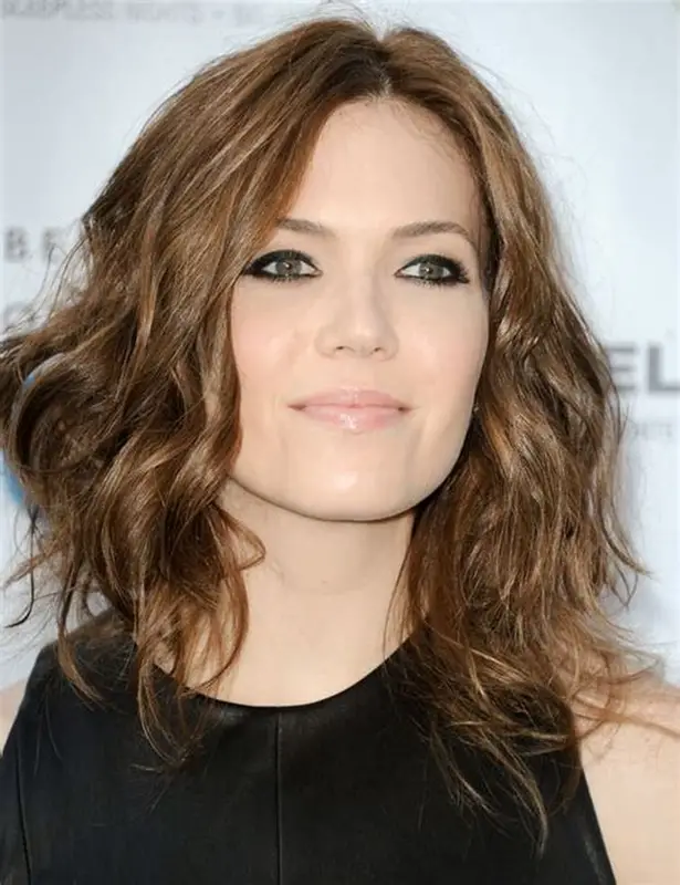 إن التموجات الناعمة والطول يوازنان الفك ويضيفان عرضًا لطيفًا حول الخدين، كما أن الغرة الطويلة والمائلة تكسر الخطوط المستقيمة للوجه وتُضفي نعومة.