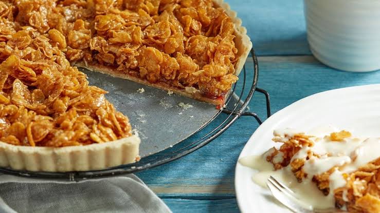 خطوات تحضير كيكة الكورن فليكس بالكراميل