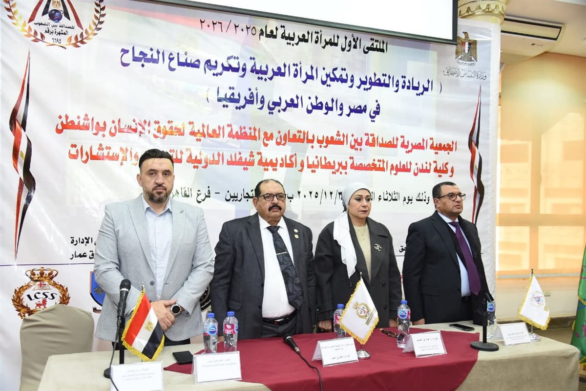 نظّمت الجمعية المصرية للصداقة بين الشعوب، برئاسة اللواء.د طارق عمار والأمين العام للجمعية الإعلامية . د تقوى اسحق الملتقى الأول للمرأة العربية لعام 2025/2026، تحت عنوان«الريادة والتطوير وتمكين المرأة وتكريم صُنّاع النجاح في مصر والوطن العربي»، وذلك بحضور رفيع المستوى من القيادات التنفيذية والقضائية، ونخبة من الشخصيات العامة، والخبراء، والإعلاميين.