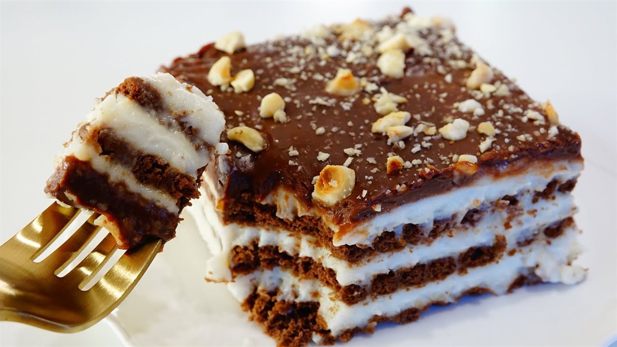 بعد ذلك ضعي كمية من الكريمة ووزعيها بالتساوي فوق الطبقة الأولى، وكرري الخطوة حتى تحصلي على عدة طبقات من البسكويت والكريمة.