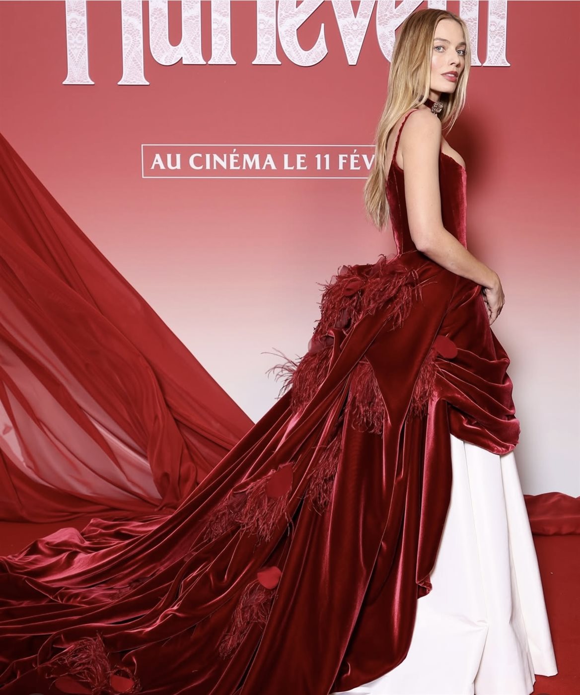 في العرض الأول للفيلم بالعاصمة الفرنسية باريس، دشّنت روبي هذا النهج باختيار فستان هوت كوتور من دار شانيل، من تصميم ماثيو بلازي، حمل طابعًا كورسيتيًا بدرجات الخمري، ونسج من المخمل والحرير، مع تفاصيل من البتلات الصناعية والريش.