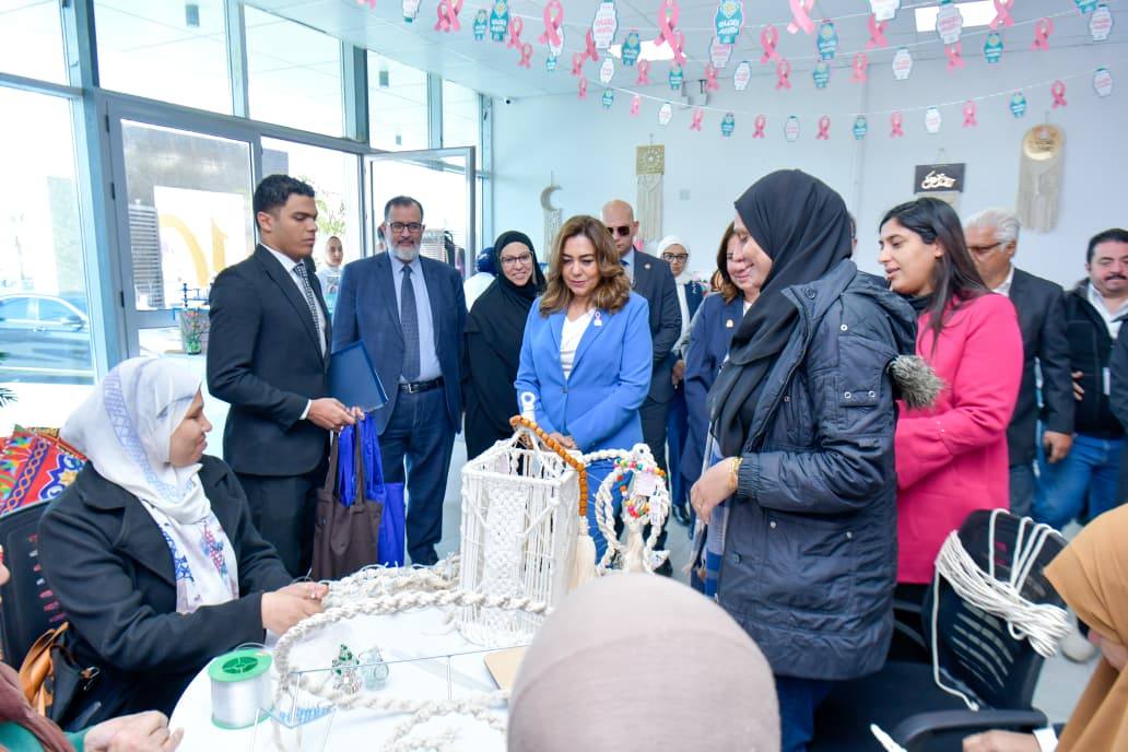 وخلال الجولة تقدمت الدكتورة منال عوض بالشكر لفريق العمل الطبى والفنى والمتطوعين لمساهمتهم فى إعطاء الأمل للسيدات ومساعدتهم على استعادة ابتسامتهم ، كما قدمت التحية لمحاربات مرض السرطان على كفاحهن ضد المرض خلال رحلة العلاج ، مؤكدةً على دعمهم واستمرار الوقوف خلفهم ، لافتةً إلى إمكانية مساعدة وزارة التنمية المحلية والبيئة للسيدات فى تسويق منتجاتهم اليدوية فى بهية من خلال عرضها فى منصة "أيادى مصر " التابعة للوزارة، حيث هناك فريق يتولى تصوير المنتج ورفعه على المنصة، للترويج الالكتروني له كما يتم تنفيد معارض فى جميع المحافظات بالتعاون مع وزارة التضامن الإجتماعى .