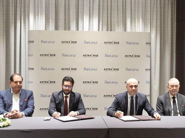 وقد وقّع الاتفاقية كل من المهندس حازم نصار، الرئيس التنفيذي لشركة أسترا رايز للتطوير العقاري، والسيد سليم الزير، مؤسس ونائب رئيس مجلس إدارة روتانا، وذلك بحضور فيليب بارنيز، الرئيس التنفيذي لروتانا، ومكرم الزير، نائب الرئيس لقطاع التطوير، والسيد محمد أشرف البنا، رئيس مجلس إدارة A-Plus للإدارة والاستشارات.