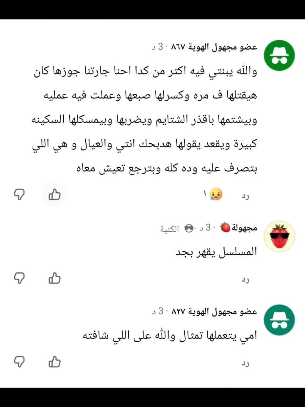 وشهدت التعليقات تفاعلًا كبيرًا من متابعي الفنانة، حيث عبر العديد منهم عن تأثرهم بالقضايا التي يطرحها العمل، مؤكدين أهمية تناول مثل هذه الموضوعات على الشاشة لتعزيز الوعي الاجتماعي وتشجيع الحوار حول العنف الأسري وطرق الوقاية منه.