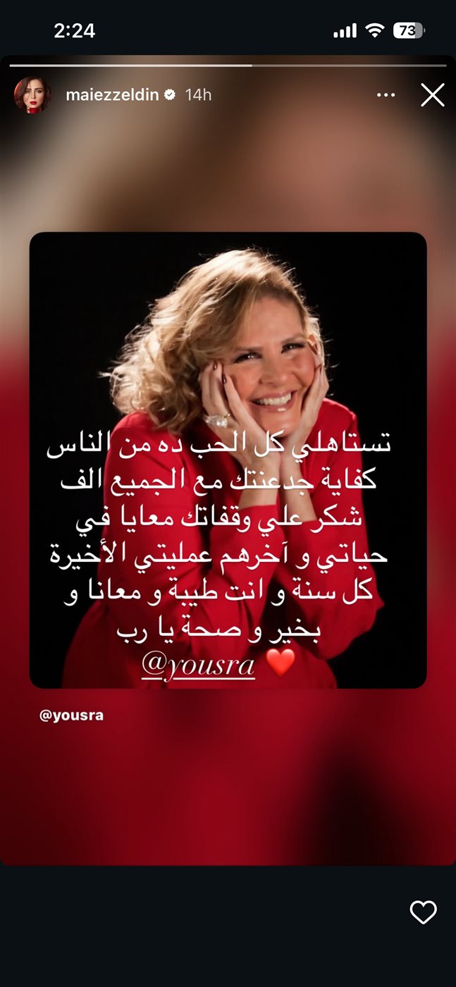 حرصت الفنانة مي عز الدين على توجيه رسالة دافئة إلى الفنانة الكبيرة Yousra بمناسبة عيد ميلادها، مشيدةً بدعم يسرا المستمر لها، خصوصاً خلال وعكتها الصحية الأخيرة، حيث لم تتخلّ عن الوقوف إلى جانبها في هذا الوقت العصيب.