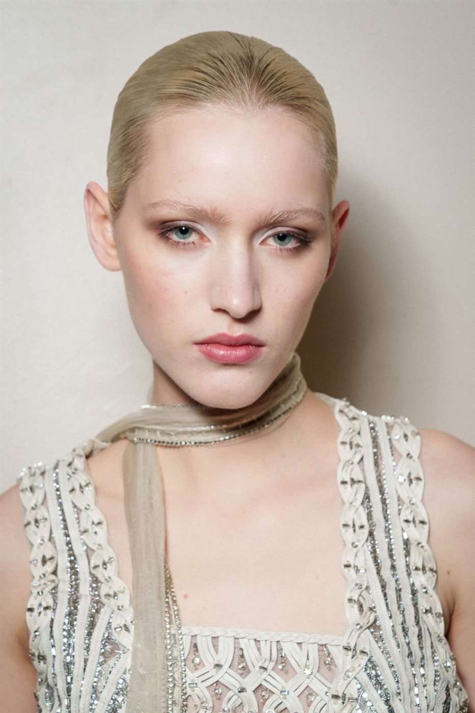 يعتمد هذا المكياج على إبراز جمال البشرة الطبيعي بأسلوب بسيط ونقي يعكس أحد أبرز اتجاهات الجمال في أسابيع الموضة.