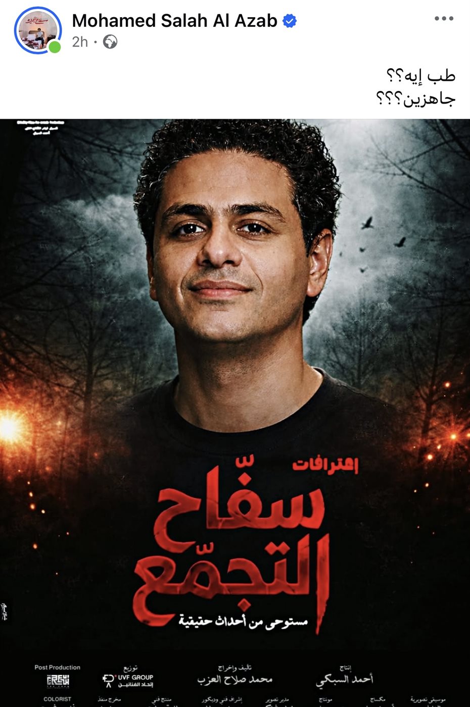 ونشر العزب عبر حسابه الرسمي على “فيسبوك” تعليقًا مقتضبًا قال فيه: «طب إيه؟؟ جاهزين؟؟؟»، مرفقًا ببوستر فيلم سفاح التجمع، في إشارة واضحة إلى اقتراب عودته، ما أشعل حماس الجمهور وأعاد الفيلم إلى دائرة الاهتمام من جديد.