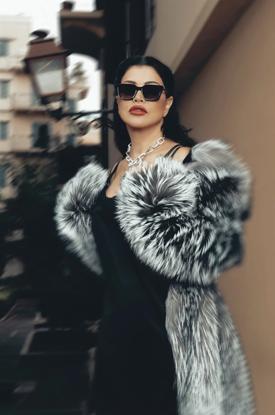- الإكسسوار العصري مع جومانا مراد: سلسلة معدنية حول العنق كسرت الطابع الكلاسيكي للفرو وأضافت روحًا شبابية متجددة.