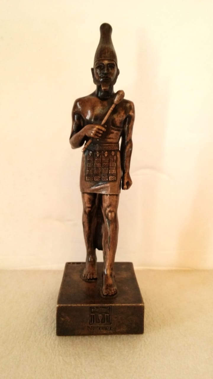 متحف ركن فاروق بحلوان: يعرض نموذجًا فضيًا للملك نارمر، مؤسس الدولة المصرية الموحدة، يظهر واقفًا حاملًا الصولجان، ويرمز إلى القوة والوحدة السياسية.