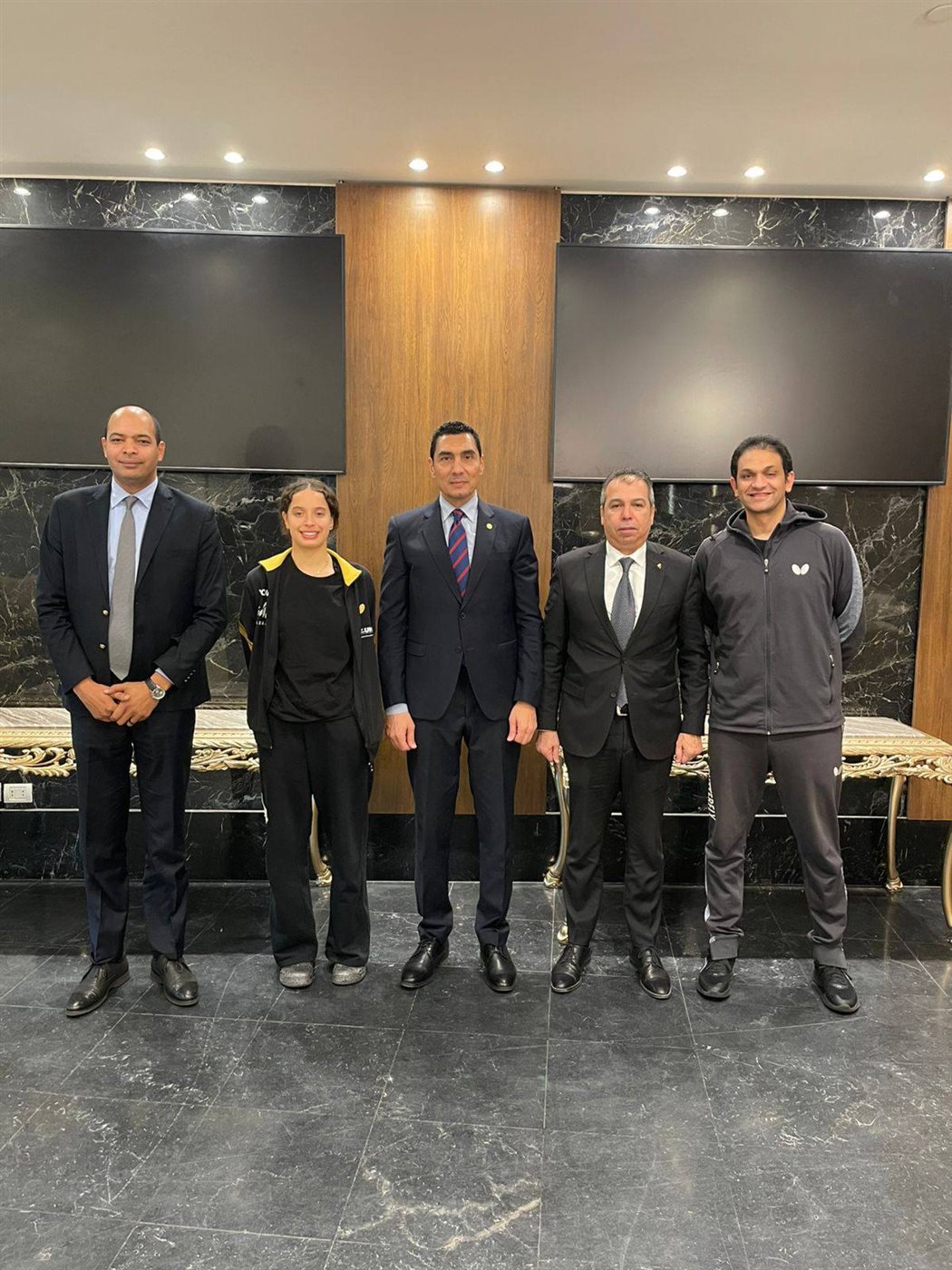 وزير الشباب والرياضة يستقبل هنا جودة بعد إنجازها التاريخي والتأهل لربع نهائي كأس العالم لتنس الطاولة