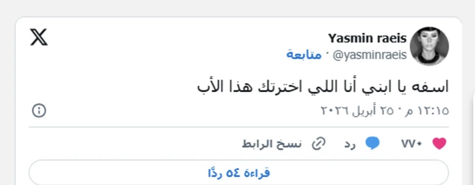 وجاءت الرسالة التي نشرتها عبر حسابها على منصة “إكس” مقتضبة لكنها تحمل دلالات قوية، إذ كتبت: “آسفة يا ابني أنا اللي اخترت لك هذا الأب”، وهو ما دفع المتابعين لتفسيرها على أنها هجوم مباشر على طليقها، خاصة في ظل الغموض الذي يحيط بعلاقتهما بعد الانفصال.
