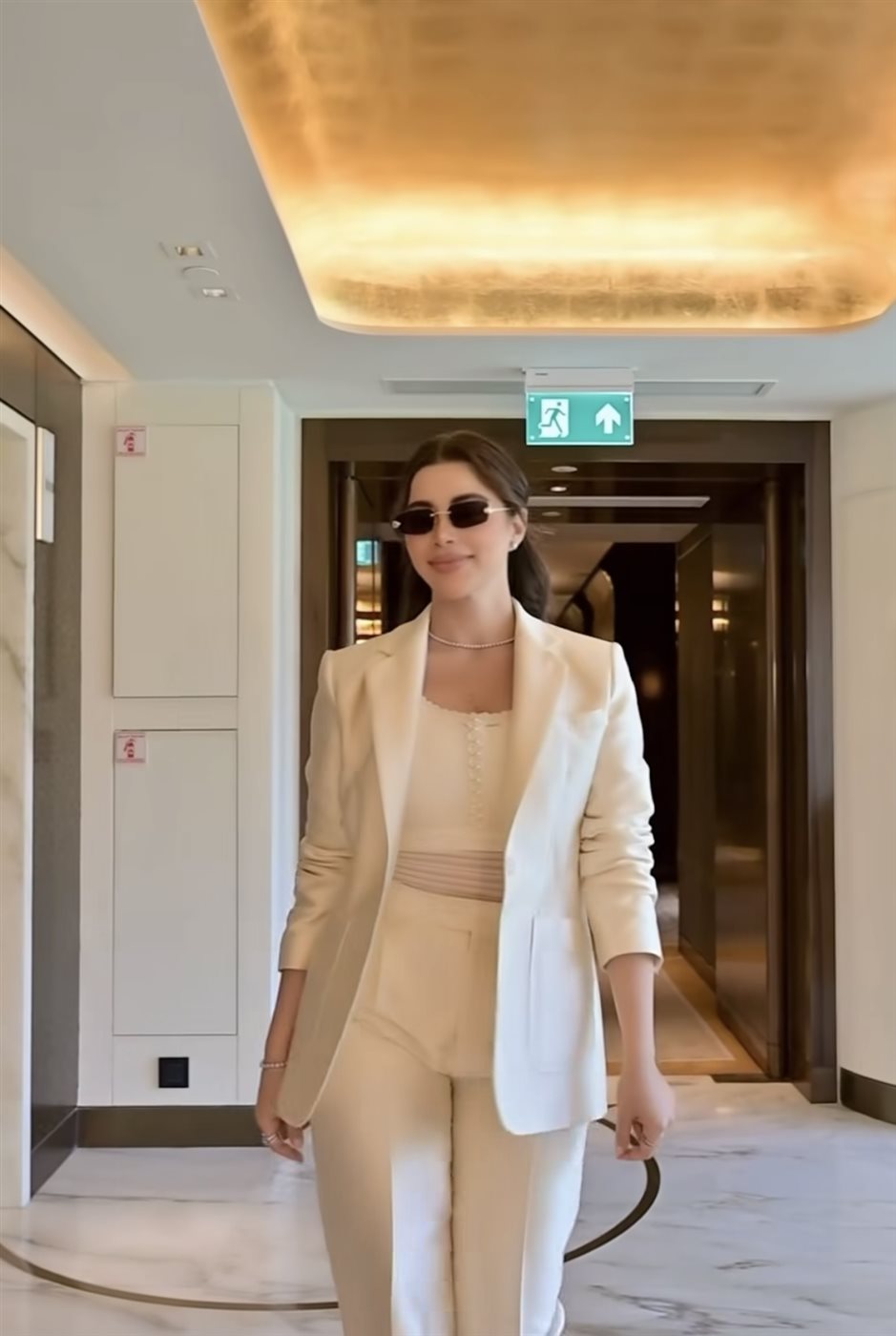 في هذا السياق، اختارت يارا السكري بدلة كلاسيكية باللون البيج الحريري، جاءت بقصة أنثوية ناعمة أبرزت ذوقها الهادئ. كما اعتمدت أسلوب “المونوكروم”، الذي يُعد من أبرز اتجاهات الموضة الحديثة، حيث نسّقت جميع القطع ضمن نفس التدرج اللوني، ما منح الإطلالة تناسقًا بصريًا راقيًا.