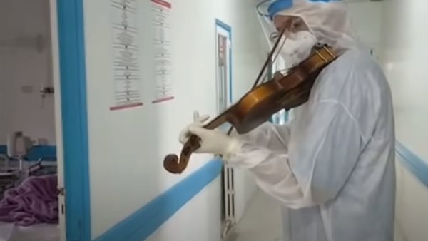 العلاج بالموسيقى.. طبيب يعزف على آلة «الكمان» لمرضى كورونا.. فيديو