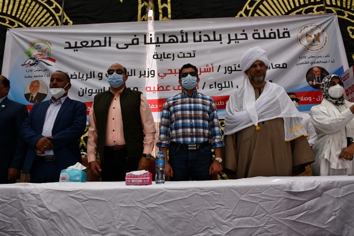 بينها تجهيز عرائس.. وزير الرياضة ومحافظ أسوان يطلقان قافلة خير بلدنا في «دراو»