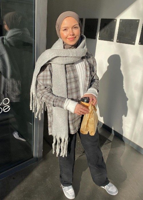 4- يمكنك اختيار الكوفية الصوف المنغلقة، والتي يتم ارتدائها حول الرقبة، فتمنحك مظهر جذاب وأنيق. فقط اختاريها بلون يتماشى مع لون حجابك.