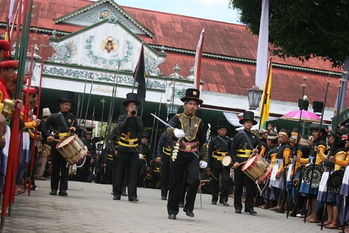 يبدأ حفل غريبج مولود باستعراض جنود كيراتون الذين يخرجون كاملين بأسلحة خاصة ولافتات وآلات موسيقية، ثم يتلوها ميوس جانجسا وهي المسيرة السلطانية ثم مسيرة بيتحق و بيسوانان غريبج، بحسب موقع دوديج الإندونيسي.