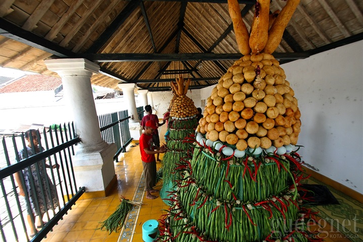 وفي نهاية العرض ، يتم إخراج غونونغان وهي كومة من الطعام تشبه الجبل الذي كان دائمًا السمة المميزة لحفل غريبج مولود التي عادة ما تكون في شكل منتجات زراعية مختلفة هي رمز لازدهار قصر يوجياكارتا الذي سيتم توزيعه لاحقًا على شعبه.
