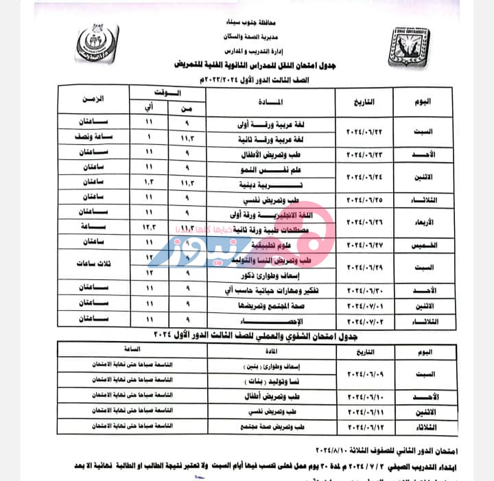 ويبحث الكثير من طلاب المدرسة الثانوية الفنية للتمريض بجنوب سيناء، على محركات البحث وأهمها محرك البحث جوجل عن جدول امتحانات النقل للصفين الأول والثاني والثالث الثانوي للتمريض للدور الأول لعام 2023 -2024 .