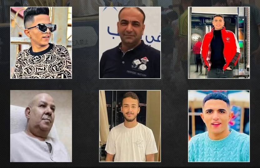 وتبين أن الضحايا هم: سيف طارق حسن الشريف، وليد حسن مصطفى، أحمد محمد زغلول، محمد السيد الموافي، عمرو مصطفى بركات، إضافة إلى جثتين مجهولتي الهوية.