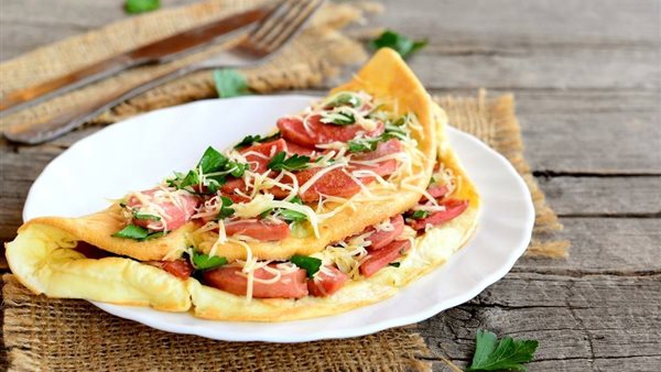 طريقة عمل أومليت البيض بالسوسيس بخطوات سهلة في مطبخك