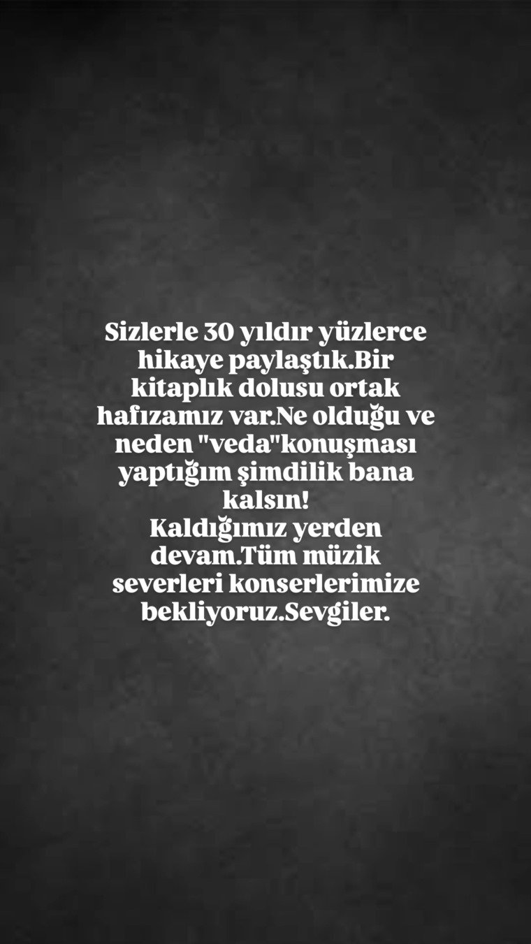 كما أضاف أوزجان دينز برسالته: "فلنكمل من حيث توقفنا، وأتطلع لرؤية محبي الموسيقى في حفلاتنا القادمة.. مع خالص الحب".