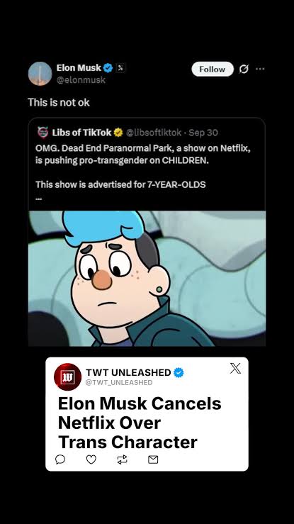 ولم يقتصر الجدل على الجمهور العربي، بل وصل إلى الساحة العالمية، حيث تفاعل رجل الأعمال الأميركي إيلون ماسك مع الأزمة الخاصة بمحتوى كرتون شهير عبر منصته «إكس»، داعيًا إلى مقاطعة نتفليكس، وكتب في منشور: «ألغوا نتفليكس حفاظًا على صحة أطفالكم».