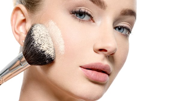استخدمي بودرة سائبة شفافة وطبّقيها بفرشاة صغيرة على المناطق المغطاة فقط، دون المبالغة في الكمية.