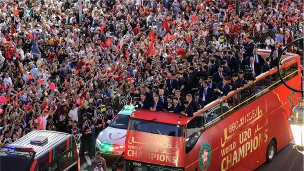 عقب الاستقبال، جابت حافلة مكشوفة شوارع الرباط وسط آلاف الجماهير التي رفعت الأعلام ورددت الهتافات الوطنية، في أجواء مفعمة بالفخر والفرح للاحتفال بفوز المنتخب المغربي.